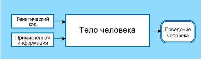 Можно сказать, что тело человека имеет два входа: на первый поступает генетический код, на второй — прижизненная информация. МОЗГ впитывает информацию из обоих источников и формирует команды, управляющие послушными эффекторами.