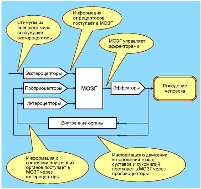 Как взаимодействуют рецепторы, МОЗГ и эффекторы